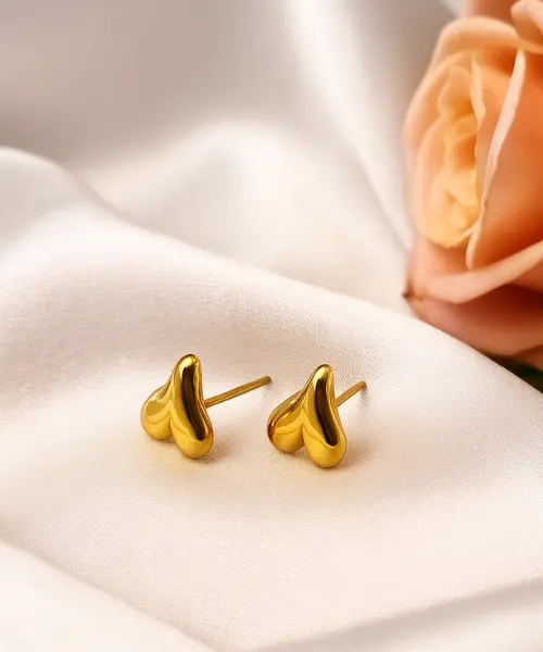 Golden Heart Stud Earrings